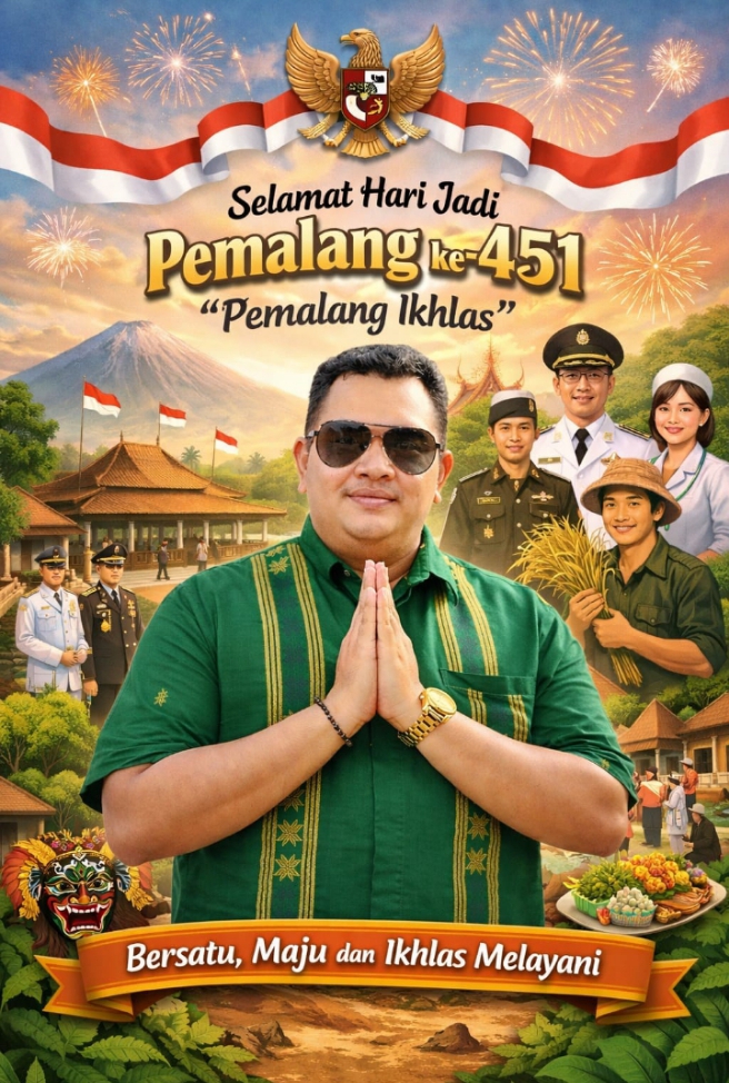 Targetberita.co.id Pemalang – Jawa Tengah, Agung Sulistio selaku Pimpinan Redaksi Sahabat Bhayangkara Indonesia (Kabarsbi.com), Ketua Umum Gabungan Media Online Cetak Ternama (GMOCT), serta Ketua II DPP Lembaga Perlindungan Konsumen Republik Indonesia (LPK-RI), menyampaikan ucapan selamat Hari Jadi Kabupaten Pemalang yang ke-451, yang diperingati pada Sabtu, 24 Januari 2026.