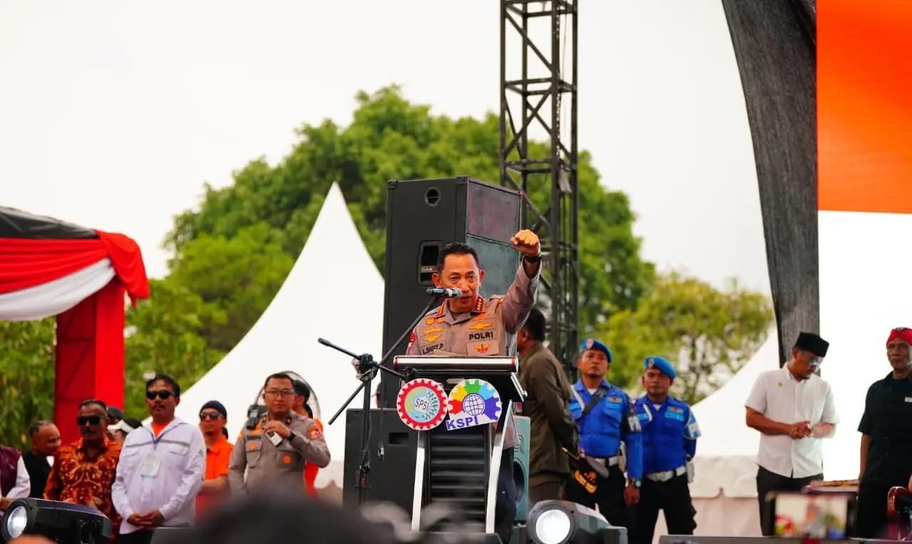 Targetberita.co.id Bekasi – Jawa Barat, Kapolri Jenderal Listyo Sigit Prabowo menghadiri Apel Akbar Kebangsaan Buruh Indonesia di Bekasi, Jawa Barat. Dalam agenda yang diikuti ribuan buruh dari berbagai wilayah ini, Kapolri mengajak semua mendukung kebijakan pemerintah.