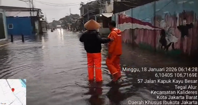 Target berita.co.id Jakarta, Akibat curah hujan yang cukup tinggi di berbagai wilayah Jakarta, menyebabkan banyaknya genangan air, khususnya diwilayah kapuk muara, Sabtu (17/1/2026).