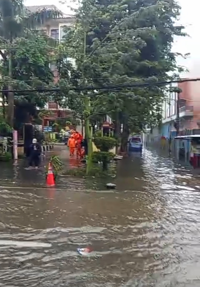 Sementara itu banjir juga terjadi di jalan kayu besar dan grisenda dengan kedalam setinggi 30-40cm.