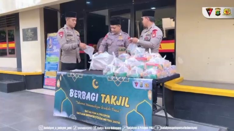 Targetberita.co.id Jakarta, Batalyon A Pelopor Satbrimob Polda Metro Jaya berbagi takjil kepada masyarakat di depan Mako Satbrimob Polda Metro Jaya, Selasa (24/2/2026) pukul 17.00 WIB.