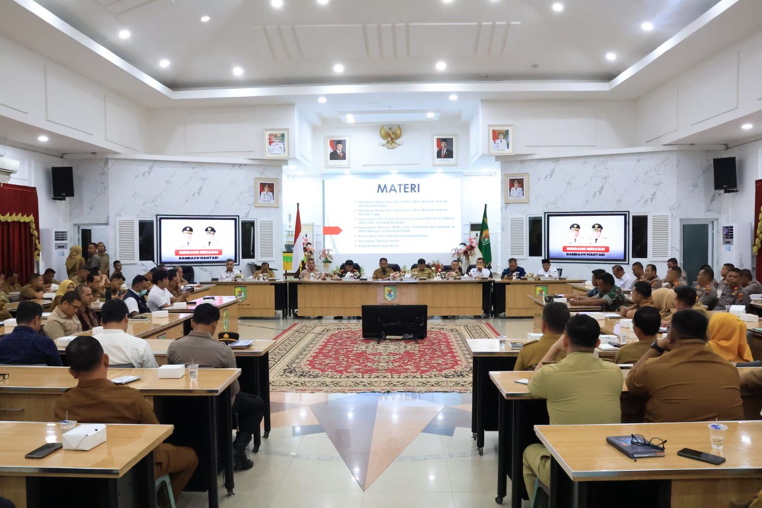 Hadir dalam rapat ini Wakil Bupati Sergai H. Adlin Tambunan, unsur Forkopimda Kabupaten Sergai, Sekdakab Sergai Suwanto Nasution, S.Pd, MM, para Kepala OPD, dan perwakilan pihak terkait.