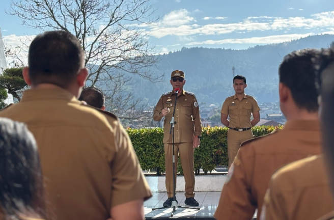 Hal ini disampaikan pada ‎Apel gabungan di lingkungan Pemerintah Kabupaten Tapanuli Utara yang dilaksanakan di halaman Kantor Bupati Tapanuli Utara, Tarutung, Senin (16/3/2026).