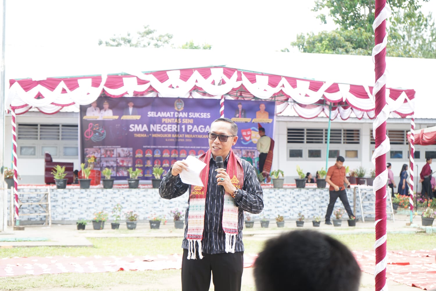 Target Berita.co.id Tapanuli Utara – Sumatera Utara, Bupati Tapanuli Utara, Dr. Jonius Taripar Parsaoran Hutabarat, S.Si., M.Si., menghadiri Pentas Seni SMAN 1 Pagaran bertajuk “Mengukir Bakat Merayakan Kreasi” di Kecamatan Pagaran, Kamis (2/4/2026).
