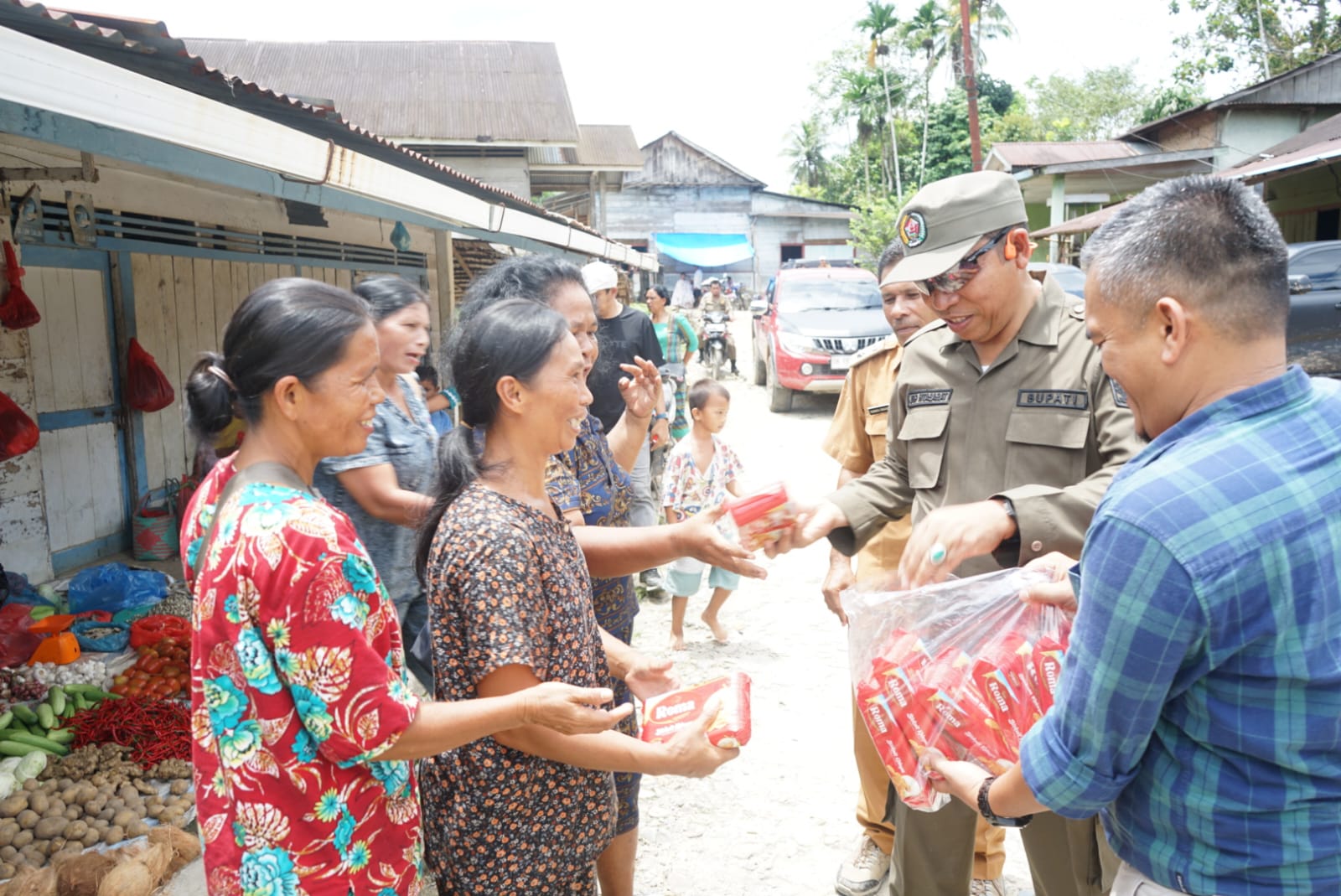 Bupati berinteraksi langsung dengan para pedagang dan masyarakat, sekaligus menyerahkan oleh-oleh sebagai bentuk perhatian dan kedekatan pemerintah kepada warga.