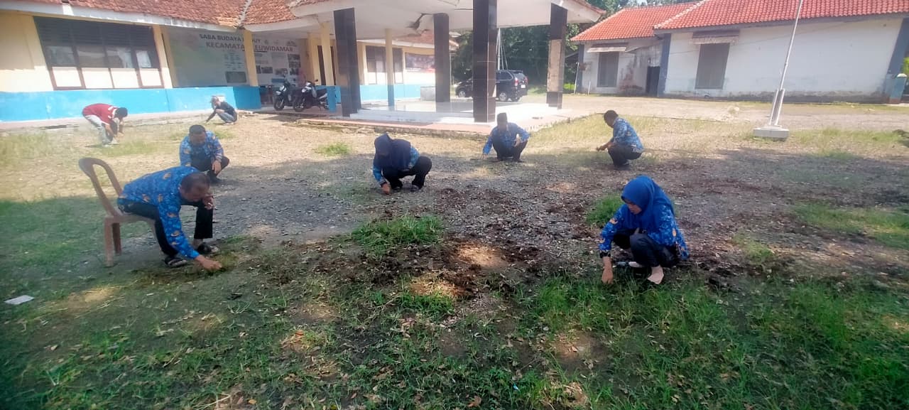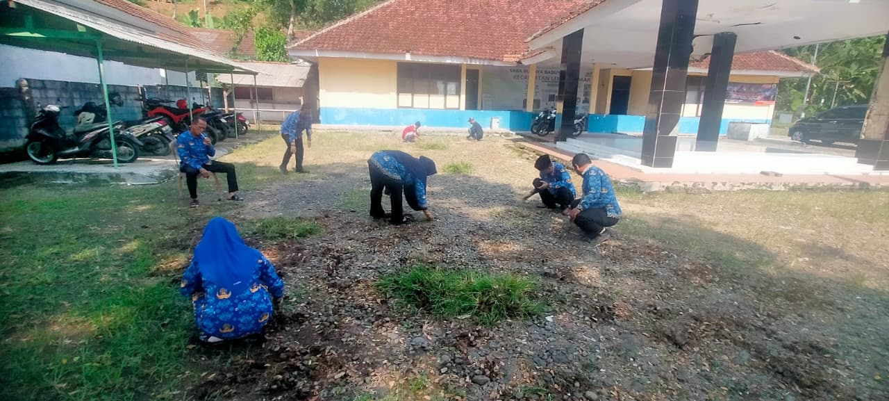Dengan penuh semangat kebersamaan, mereka membersihkan halaman, menata taman, memangkas rumput liar, serta menata ulang area parkir agar tampak lebih rapi dan nyaman bagi masyarakat yang berkunjung ke kantor kecamatan.