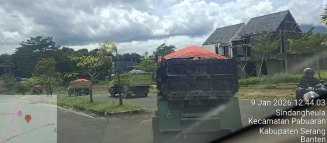 Targetberita.co.id Serang – Banten, Dugaan dampak polusi akibat aktivitas lalu lalang dump truck pengangkut pasir dan berangkal dari lokasi Kapling Tubagus yang beralamat di Kampung Benua Kidul, Desa Sindangheula, Kecamatan Pabuaran, Kabupaten Serang, Banten, menjadi viral dikalangan masyarakat, Selasa (3/2/2026).