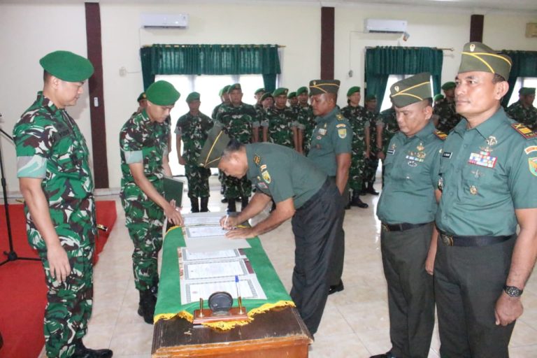 Targetberita.co.id Kab. Oku – Sumatera Selatan, Dalam rangka penyegaran dan optimalisasi kinerja satuan, Komandan Kodim 0403/OKU Letkol Arh Yusuf Winarno, S.I.P., M.Han., memimpin langsung serah terima jabatan (Sertijab) Danramil dan Perwira Staf, kegiatan berlangsung di Aula Yudha Makodim Jl. A. Yani Km 6 Kemelak Bindung Langit, Kecamatan Baturaja Timur, Kabupaten OKU, Jumat (12/12/2025).