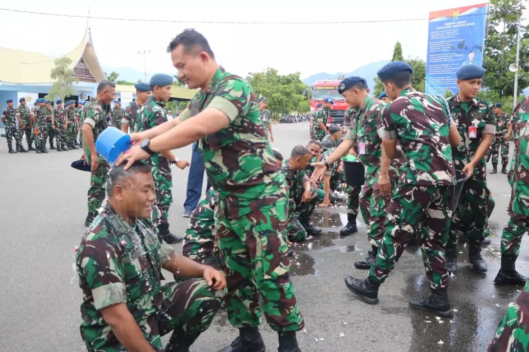 Kegiatan kemudian dilanjutkan dengan tradisi penyiraman bunga serta acara syukuran bersama personel yang menerima kenaikan pangkat.