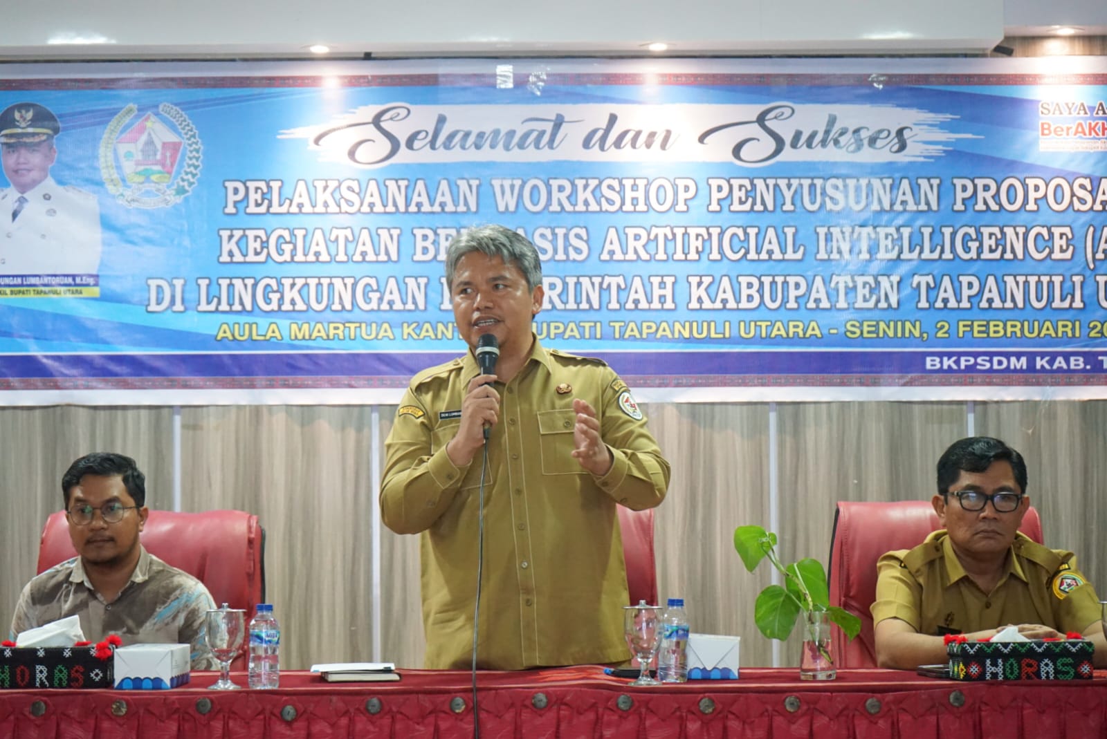 Hal tersebut diwujudkan melalui Workshop Penyusunan Proposal Kegiatan Berbasis Artificial Intelligence (AI) atau Kecerdasan Buatan yang dibuka secara resmi oleh Wakil Bupati Tapanuli Utara Dr. Deni Parlindungan Lumbantoruan, M.Eng, didampingi Sekretaris Daerah Drs. Henry M. M. Sitompul, M.Si dan Pelaksana Tugas (Plt.) Kepala BKPSDM Jenri Simanjuntak, di Aula Martua Kantor Bupati Tapanuli Utara, Tarutung, Senin (2/2/2026).