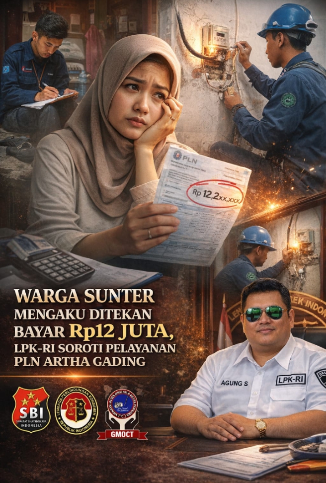 Seorang warga bernama Ibu Lia, yang tinggal di Sunter Agung RT 07 RW 07, Kelurahan Sunter Agung, Kecamatan Tanjung Priok, Kota Administrasi Jakarta Utara, mengaku diminta membayar tagihan listrik sebesar Rp. 12.209.261 setelah adanya pemeriksaan meteran listrik di rumahnya, Rabu (5/3/2026).