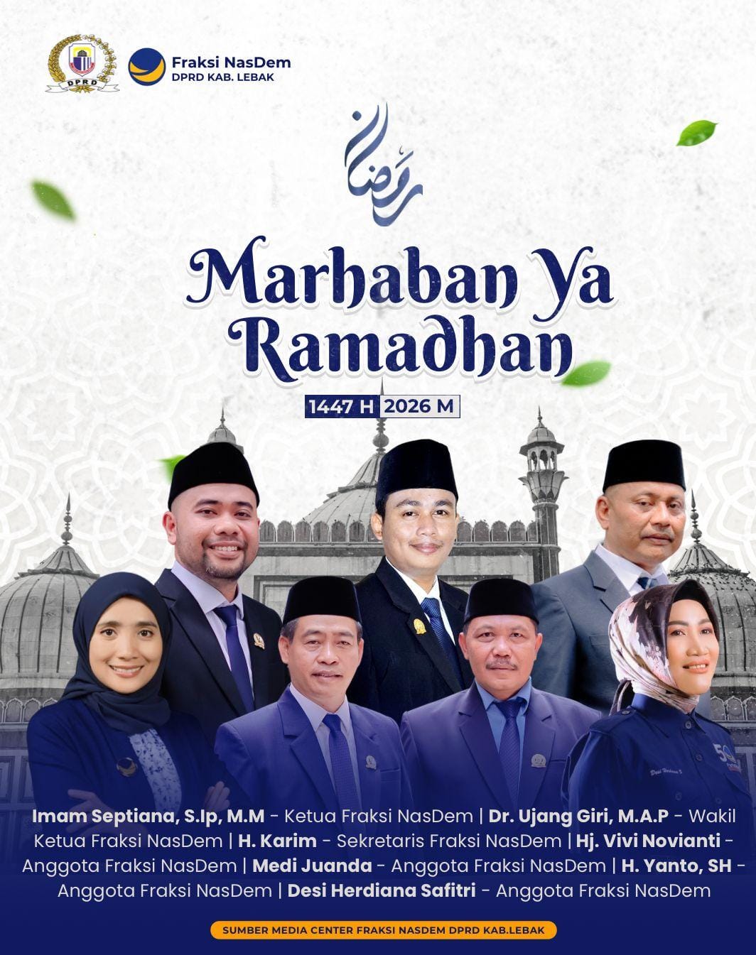 Targetberita.co.id Lebak – Banten, Menyambut bulan suci Ramadhan 1447 Hijriah, Fraksi NasDem DPRD Kabupaten Lebak menyampaikan ucapan selamat kepada seluruh umat muslim yang akan menjalankan ibadah puasa.