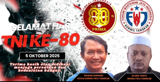 Melalui momentum HUT TNI ke-80 yang mengusung semangat ‘TNI PRIMA’, FWJI Kabupaten Tangerang berharap TNI semakin profesional, tangguh, dan terus menjadi kebanggaan bangsa Indonesia.