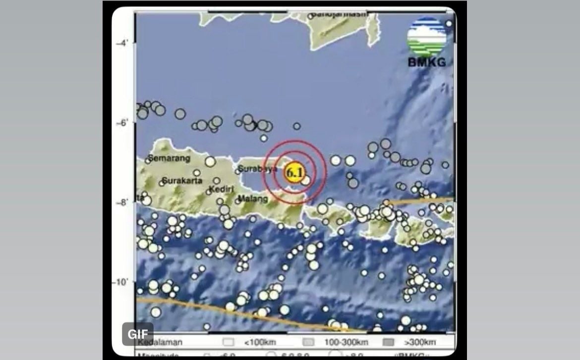 Badan Meteorologi, Klimatologi, dan Geofisika (BMKG) melaporkan gempa berkekuatan magnitudo 6,1 terjadi pukul 23.49 WIB dengan pusat gempa berada di koordinat 7,25 Lintang Selatan dan 114,19 Bujur Timur, atau sekitar 47 kilometer tenggara Sumenep, Jawa Timur. Gempa terjadi pada kedalaman 13 kilometer.