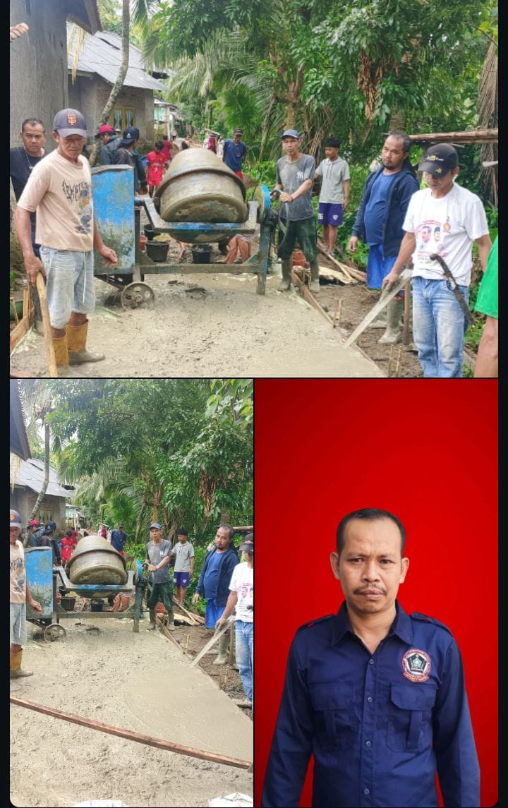 Puluhan warga tampak antusias bahu membahu menjalankan berbagai tahapan pekerjaan, mulai dari mengaduk semen, mengangkut material, hingga meratakan adukan beton – seluruhnya dilakukan secara bersama-sama.