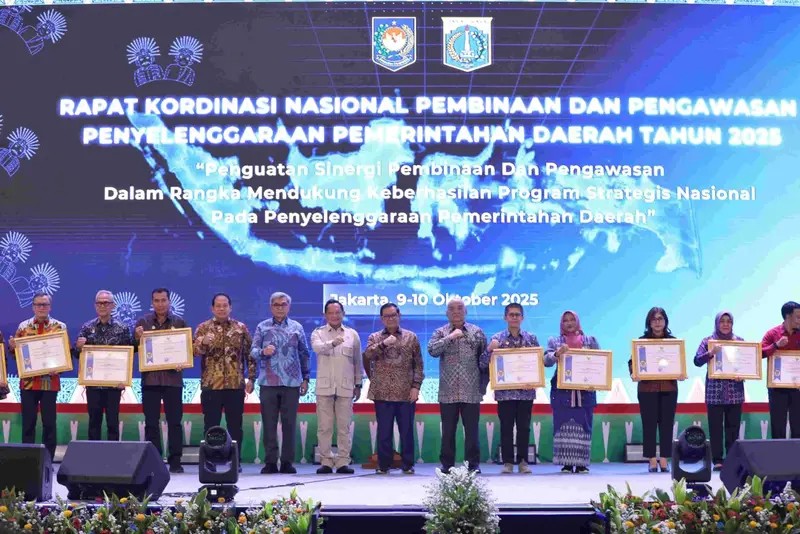 Sebagai informasi, pada Rakornas Binwas Inspektorat Daerah Tahun 2025, turut mo dilakukan penyerahan Penghargaan Anggaraksa Dharma kepada Inspektur Daerah dengan Kinerja Terbaik oleh Menteri Dalam Negeri kepada lima Inspektur Provinsi (termasuk Provinsi DKI Jakarta), sepuluh Inspektur Kabupaten, dan sepuluh Inspektur Kota.