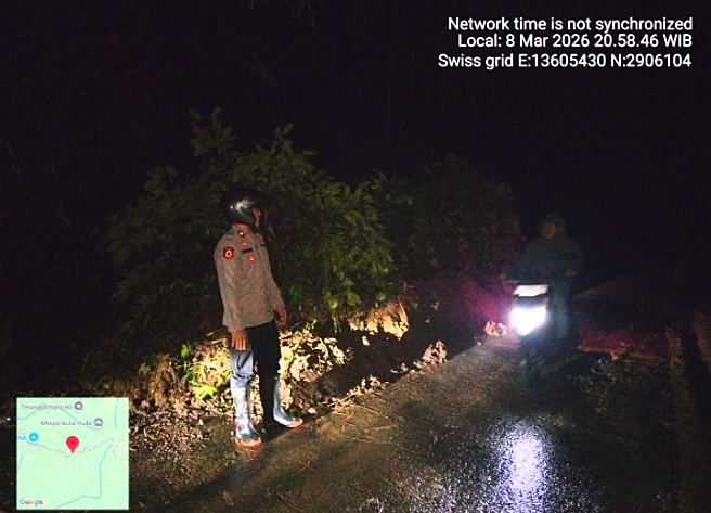 “Setelah menerima informasi, anggota kami langsung bergerak ke lokasi untuk mengecek kondisi lapangan sekaligus membantu membuka akses jalan yang tertutup material tanah agar arus lalu lintas tidak lumpuh total,” ujar IPTU Tjik Denmark.