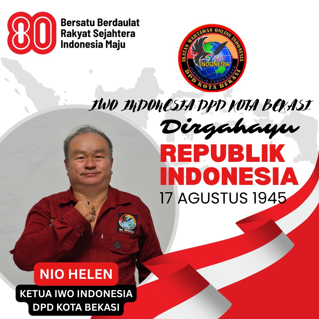 Ucapan Dirgahayu ke-80 Republik Indonesia dari Nio Helen, Ketua IWO Indonesia DPD Kota Bekasi bukan sekadar formalitas, melainkan seruan untuk terus menjaga kemerdekaan.