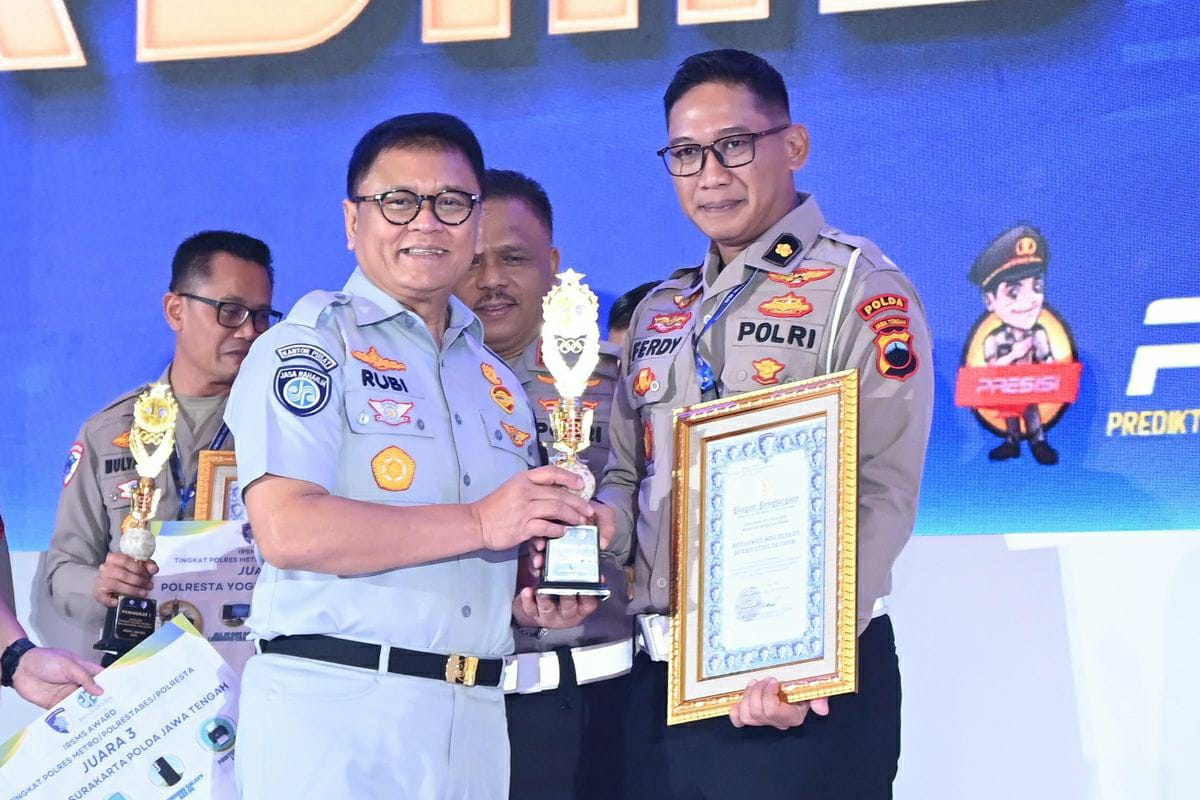 IRSMS Award diserahkan dalam rangkaian hari kedua pelaksanaan Rapat Kerja Teknis (Rakernis) Fungsi Lalu Lintas 2025 yang digelar di Gedung Tribrata Dharmawangsa, Jakarta, Jumat (13/6/2025). dilansir kompas. com