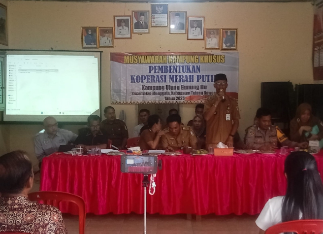 Targetberita.co.id Tulang Bawang – Lampung, Kampung Ujung Gunung Ilir melaksanakan Musyawarah pembentukan koperasi Merah Putih yang dicanangkan oleh pemerintah Pusat Senin (05/05/2025).