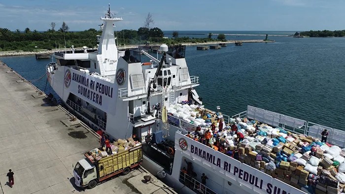 Targetberita.co.id Jakarta, Kapal Badan Keamanan Keamanan Laut (Bakamla) RI KN. Pulau Dana-323 tiba di Pelabuhan Lhokseumawe, Aceh, Selasa (23/12/2025), membawa bantuan kemanusiaan bagi korban banjir dan longsor. Bantuan logistik yang dibawa seberat 92,2 ton.