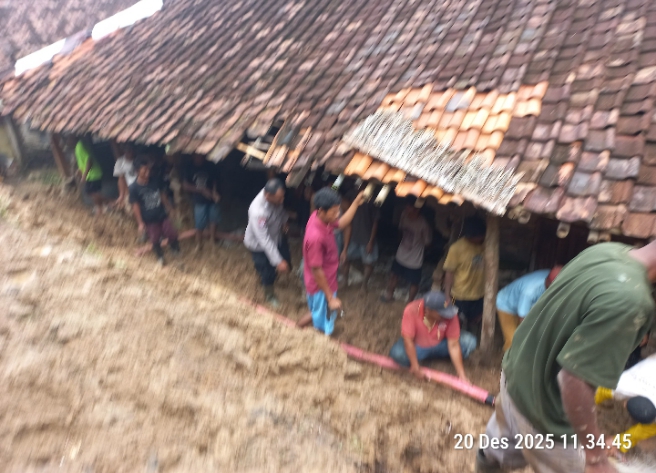 “Akibat hujan deras yang terjadi sejak pagi hari, tanah menjadi labil sehingga terjadi longsor di dua lokasi dan angin kencang menyebabkan satu pohon kelapa tumbang menimpa rumah warga,” ujar IPTU Deni Kusnadi, Sabtu (20/12/2025).
