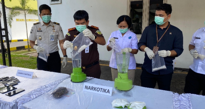 ‎Narkotika (Sabu & Ekstasi): Dimusnahkan dengan cara diblender dan dilarutkan ke pembuangan air.