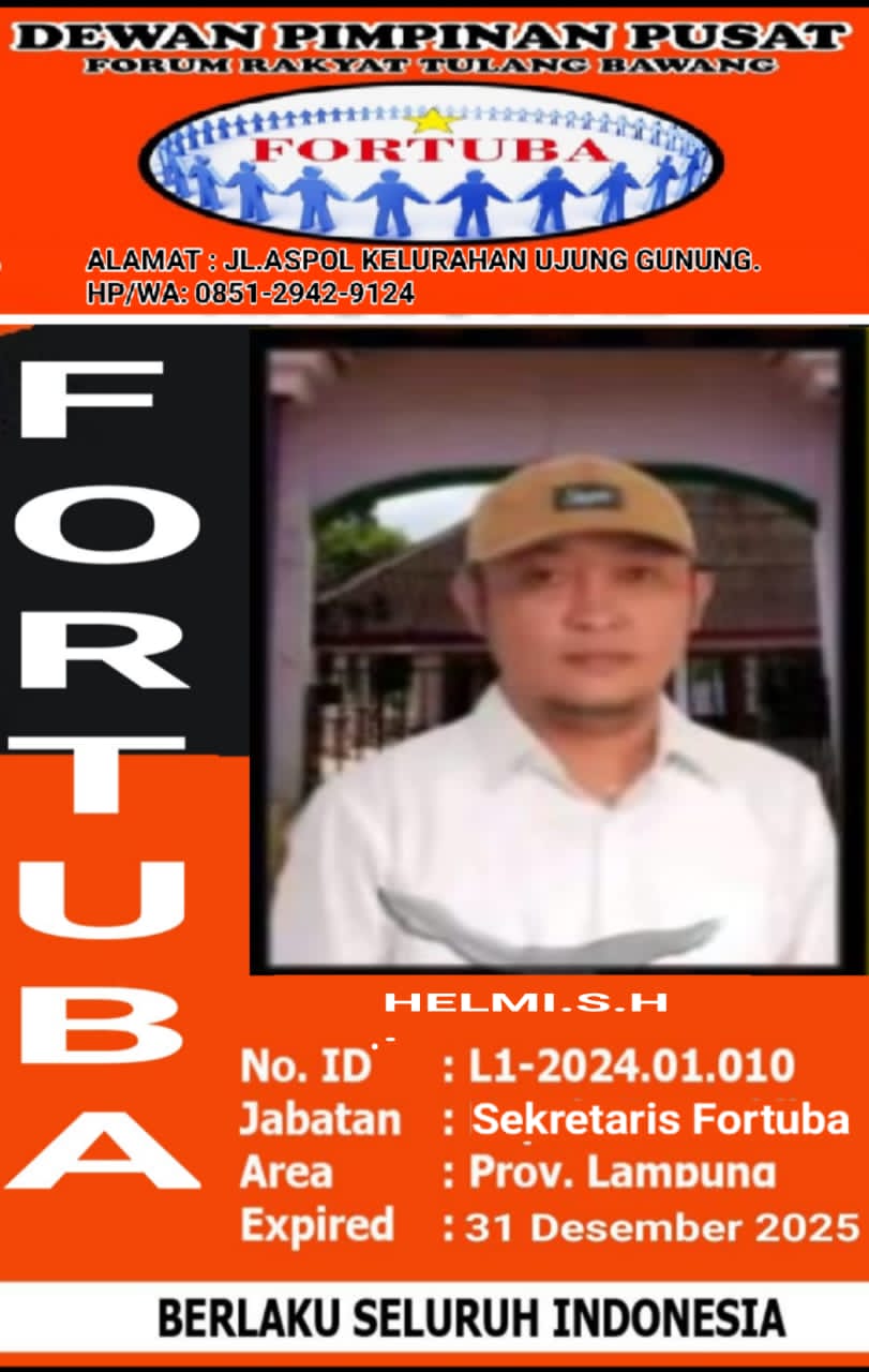 Beni Setiawan menambahkan, terkait isu adanya KTA LSM PORTUBA atas nama “Helmi S.H yang telah beredar di kalangan masyarakat dan publik itu telah melanggar, Undang-Undang Hak Cipta, Menurut Undang-Undang Republik Indonesia Nomor 28 Tahun 2014 tentang Hak Cipta Pasal 12 berbunyi: