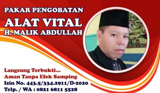 Kalau Anda memiliki masalah dengan kejantanan, jangan di biarkan saja. Segera lakukan pengobatan di klinik pengobatan khusus alat vital Bpk H. Malik Abdullah sekarang!