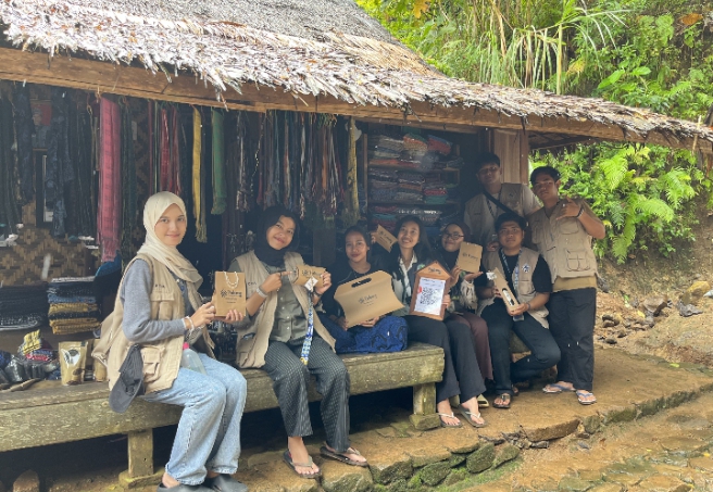 Melalui kolaborasi lintas kampus tersebut, mahasiswa merancang konsep identitas visual yang mencerminkan karakter usaha dan filosofi budaya Baduy.