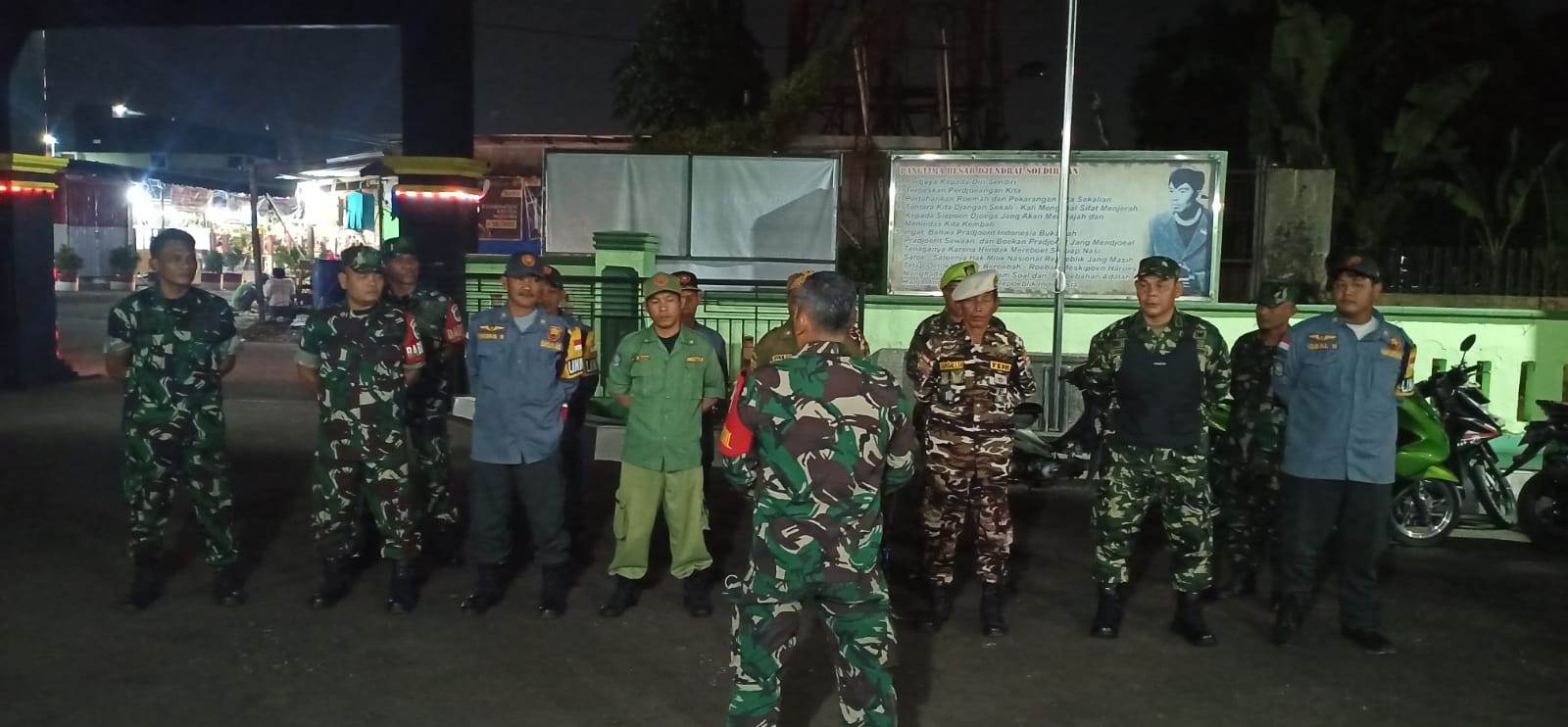 Kegiatan ini dipimpin langsung oleh Danramil Mayor Arm Mahtom Tohari dan melibatkan total 16 personel gabungan, termasuk anggota PPM, FKPPI, dan Linmas.