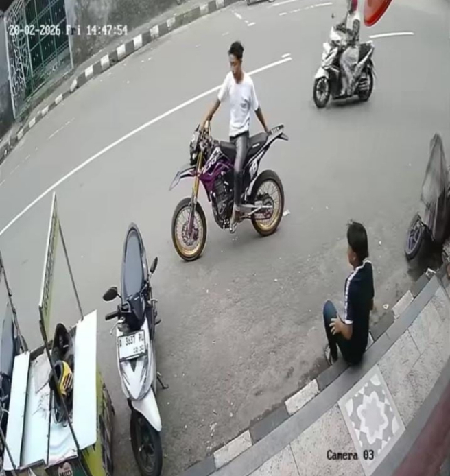 Aksi pelaku sempat terekam kamera pengawas (CCTV) di sekitar lokasi kejadian dan viral di media sosial.