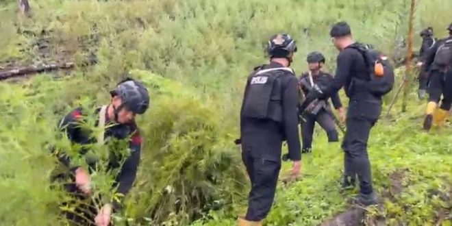Perburuan ladang ganja berlangsung dramatis. Selama dua hari, tim personel Bareskrim harus menaklukkan medan ekstrem menyeberangi sungai, melintasi jurang terjal, memanjat bebatuan besar, hingga berjalan di tengah hujan lebat sebelum akhirnya menemukan kebun raksasa itu pada Jumat (14/11/2025).