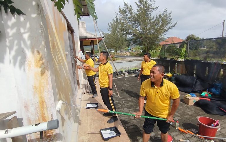 Melalui program ini, para personel polisi turun langsung membersihkan Gereja Oikumene Padang Melang, Sabtu (6/12/2025).