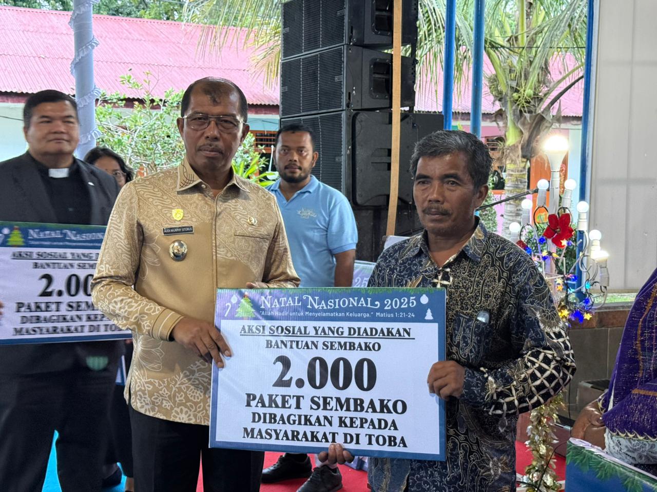 Wakil Bupati Toba dalam sambutannya menyampaikan terimakasih atas berbagai bantuan yang diserahkan oleh panitia natal untuk masyarakat Tapanuli, khususnya masyarakat Kabupaten Toba.
