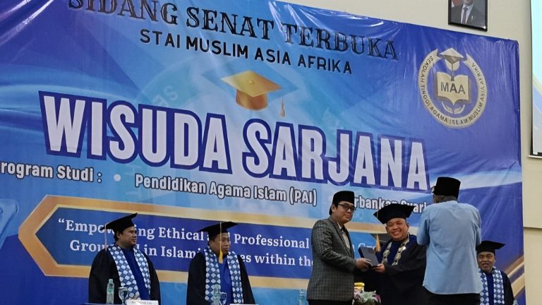 Targetberita.co.id Jakarta, Prosesi wisuda Sarjana Sekolah Tinggi Agama Islam Muslim Asia Afrika yang digelar di Syahida Inn, Minggu (11/1/26), berlangsung khidmat dan penuh makna.