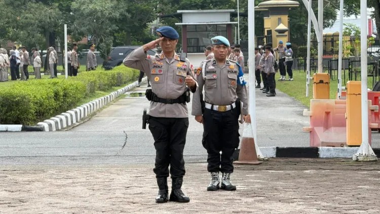 Kegiatan yang berlangsung sekitar pukul 08.00 WIB tersebut dilaksanakan di depan Gedung Sentra Pelayanan Kepolisian Terpadu (SPKT) Mapolda Riau dan diikuti oleh personel piket fungsi dari satuan kerja terkait.