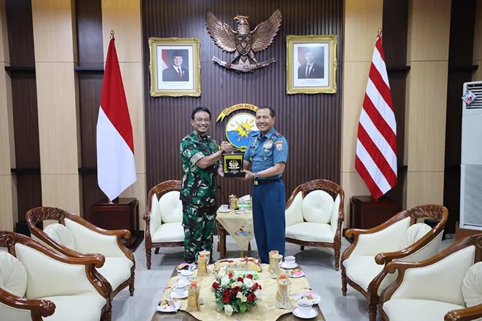 Tatgetberita.co.id Jakarta, Panglima Komando Armada (Pangkoarmada) II Laksamana Muda I Gung Putu Alit Jaya menerima kunjungan kehormatan Panglima Komando Pertahanan Udara Nasional (Pangkohanudnas) Marsekal Madya Andyawan Murtiono Putra di Surabaya, Senin (3/11/2025).