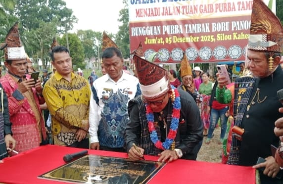 Targetberita.co.id Simalungun – Sumatera Utara, Komitmen pelestarian warisan leluhur marga Purba Tambak di Simalungun diwujudkan dengan peresmian nama Jalan Tuan Ghaib Purba Tambak di Silou Dunia, Jumat (5/12/2025).