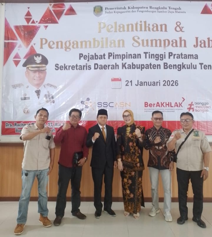 Targetberita.co.id Bengkulu Tengah – Bengkulu, Pelantikan sekretariat Daerah kabupaten Bengkulu Tengah yang dilantik Bupati Bengkulu Tengah Drs. Rachmat Riyanto S.I.M Ap berlangsung berjalan dengan lancar, bertempat di aula pendopo rumah dinas Bupati Bengkulu Tengah, Rabu (21/1/2026).