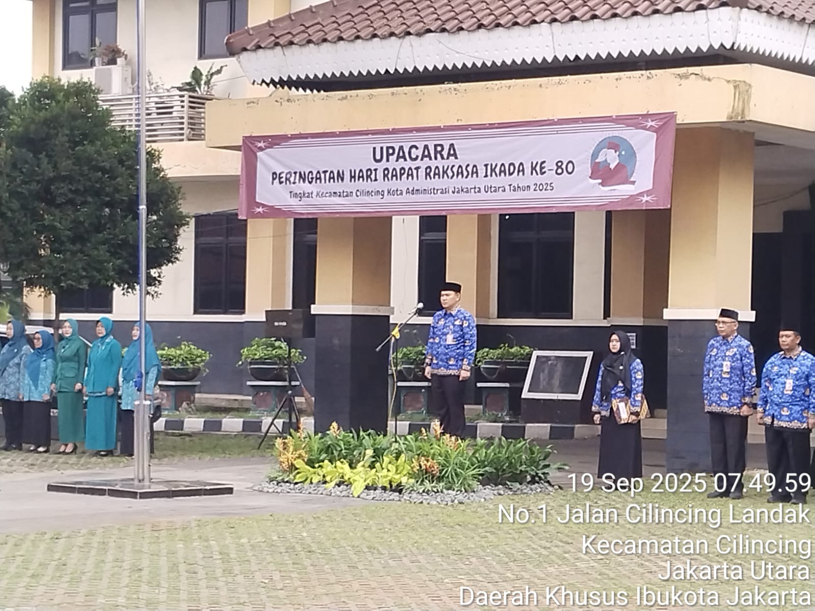 Targetberita.co.id Jakarta Utara, Dalam rangka memperingati Hari Rapat Raksasa Ikada ke-80, Kecamatan Cilincing menggelar upacara peringatan yang berlangsung khidmat dan penuh semangat nasionalisme, bertempat di halaman Kantor Kecamatan Cilincing, Jakarta Utara, pada Jumat (19/9/2025).