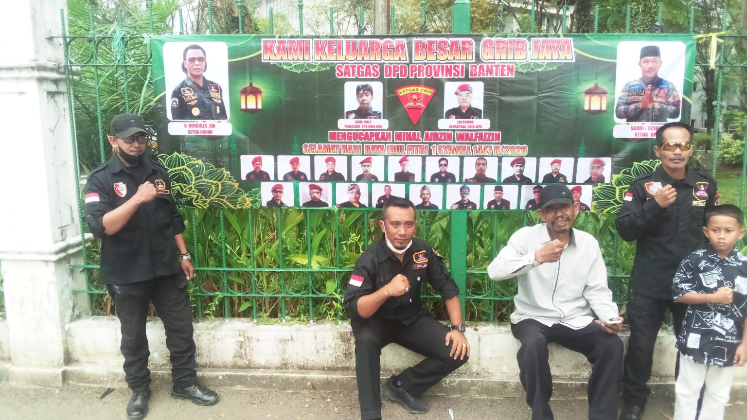 ‎Perkuat Silaturahmi, Satgas DPD GRIB Jaya Banten Pasang Spanduk Idul Fitri di Jantung Kota Rangkasbitung