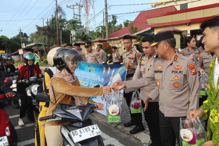 ‎Kegiatan yang berlangsung khidmat ini diawali dengan pembagian takjil gratis kepada masyarakat yang melintas di depan Mapolda.