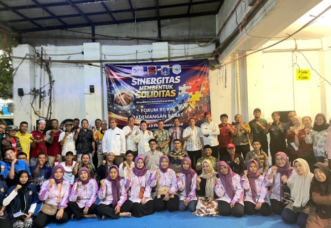 Targetberita.co.id Jakarta Utara, Dalam upaya memperkuat sinergitas antara aparat pemerintah, kepolisian, dan masyarakat, kegiatan Silaturahmi Forum RT/RW bertema “Sinergitas Membentuk Soliditas” digelar di halaman Kantor RW 005, Kelurahan Pademangan Barat, Kecamatan Pademangan, Jakarta Utara, Sabtu (13/2/2026) malam.