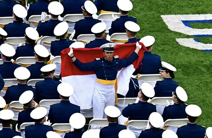 Sebagai tanda rampungnya pendidikan, Letda Tri beserta lulusan USAFA lainnya mengikuti upacara kelulusan yang digelar di Falcon Stadium, Colorado Springs pada Kamis (29/5/2025).