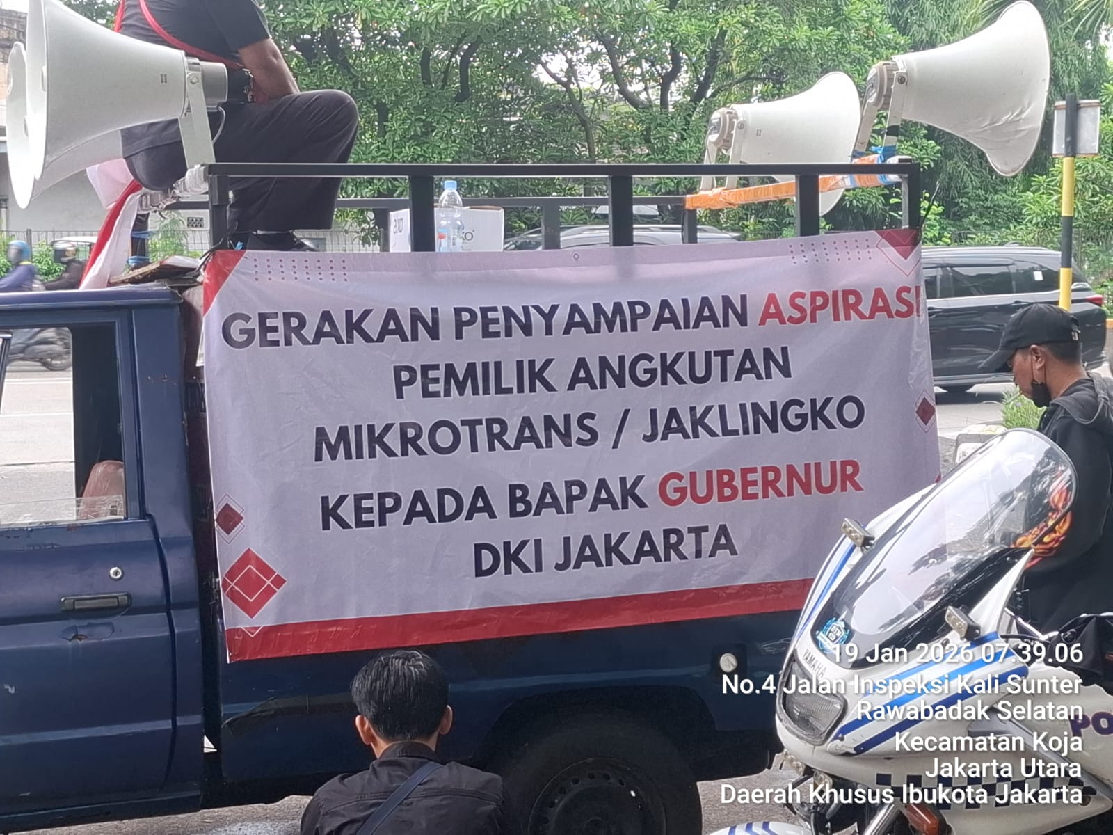 Targetberita.co.id Jakarta, Aparat kepolisian bersama Dinas Perhubungan DKI Jakarta melakukan pengamanan terpadu dalam mengawal keberangkatan massa sopir dan pemilik angkutan Koperasi Wahana Kalpika (KWK) Jakarta Utara menuju Balai Kota, Senin (19/1/2026) pagi.