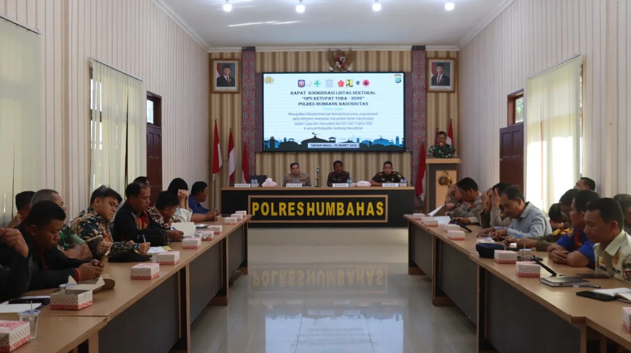 Targetberita.co.id Sumatera Utara, Polres Humbang Hasundutan menggelar rapat koordinasi (rakor) lintas sektoral menjelang pelaksanaan Operasi Ketupat Toba 2026 di Aula DP Silitonga Polres Humbahas, Sabtu (7/3/2026).