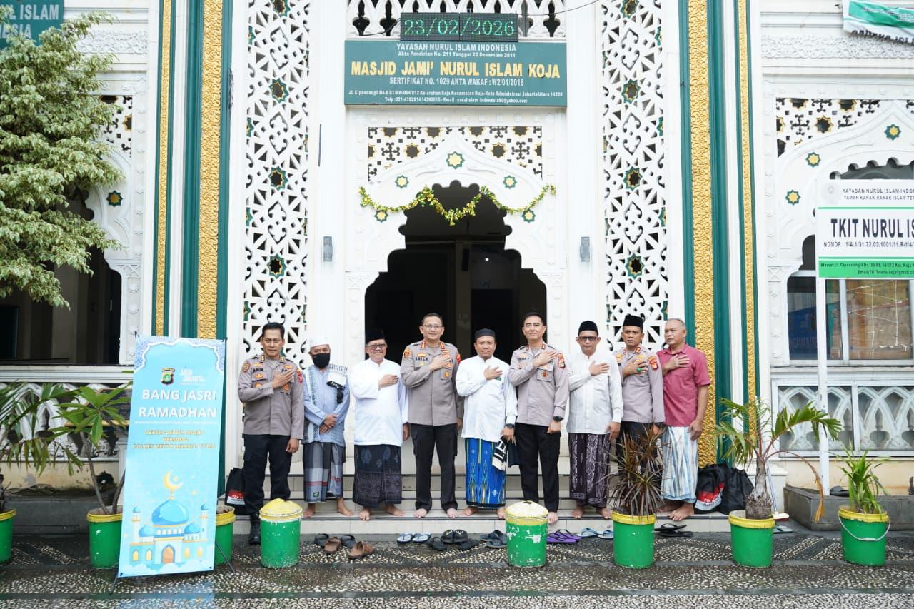 Targetberita.co.id Jakarta Utara,  Menjelang bulan suci Ramadan 1447 Hijriah, Polres Metro Jakarta Utara menggelar kegiatan Bang Jasri (Bhayangkara Jakarta Aman, Sehat, Resik, dan Indah) Ramadhan di Masjid Jami’ Nurul Islam, Jalan Cipeucang II No. 8 RT 001 RW 004, Kelurahan Koja, Kecamatan Koja, Jakarta Utara, Senin (23/2/2026) sore.