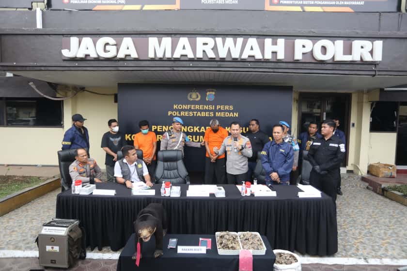 Pertama, kasus penjualan offset beruang madu, dan kedua adalah perdagangan sisik trenggiling, ujar Jean Calvijn saat konferensi pers di Mapolrestabes Medan, Jumat (14/11/2025).