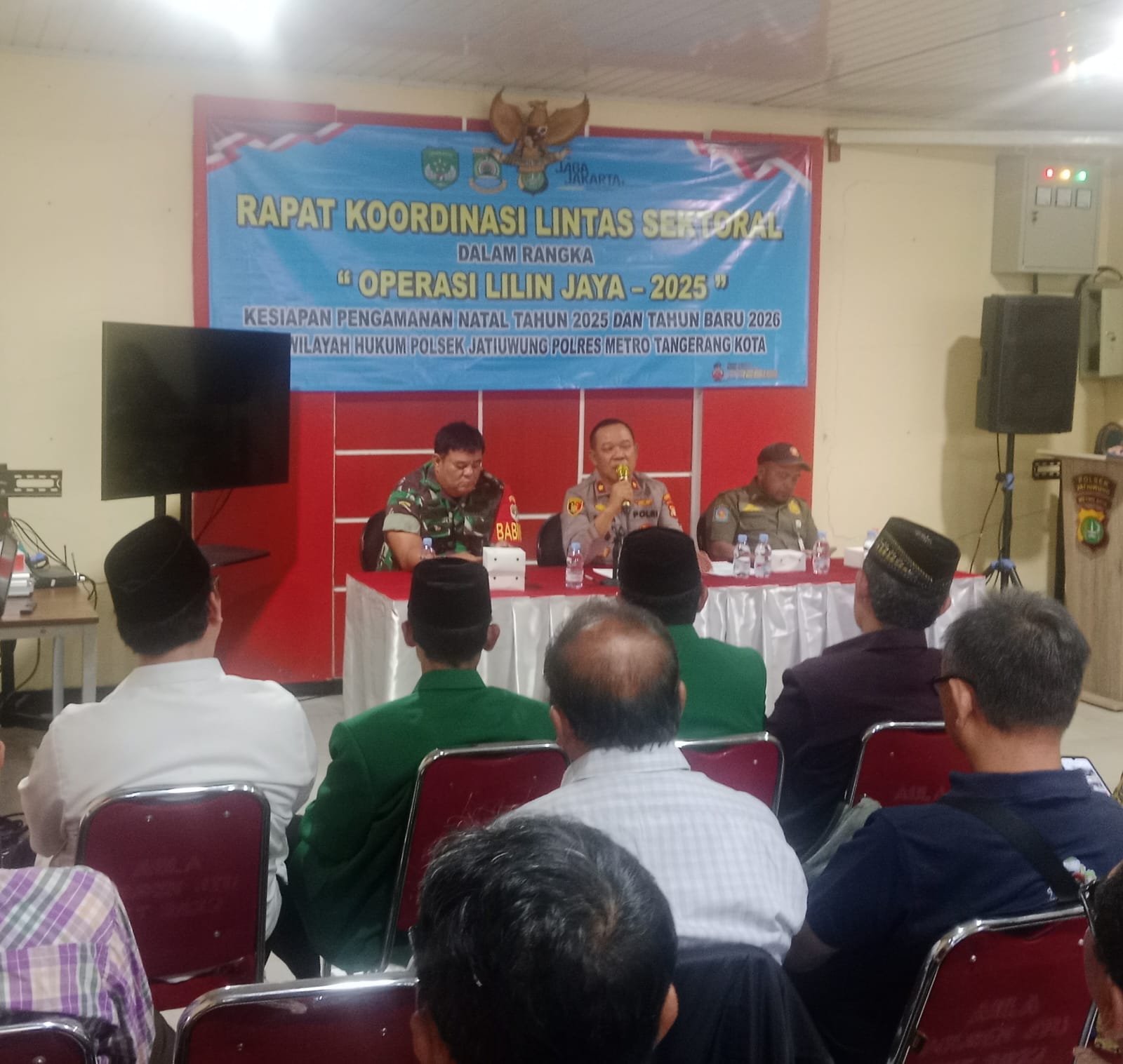 Rapat Kordinasi Lintas sektoral operasi LILIN Jaya 2025 yang dilaksanakan diaula Polsek Jati, Jalan Gatot Subroto Kota Tangerang berlangsung dengan hikmat dan disambut positif oleh pemuka dan Pendeta dari beberapa Gereja yang ada dan berdomisili diwilayah hukum Polsek Jati Uwung.